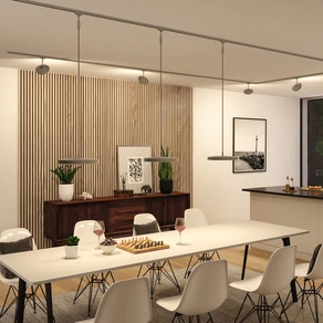 Systemy szynowe mogą być instalowane przy stosunkowo niewielkim wysiłku i oferują wysoki stopień adaptacji - idealne do wynajmowanych mieszkań lub zmieniających się sytuacji życiowych. W wielu przypadkach do zasilania całego systemu wystarczy jedno gniazdo zasilania. Oprawy można dowolnie ustawiać, wymieniać lub dodawać wzdłuż szyny. Tworzy to elastyczną koncepcję oświetlenia, którą można rozszerzyć i zreorganizować w dowolnym momencie - bez konieczności przeprowadzania kosztownych prac adaptacyjnych. Siła modułowego systemu oświetlenia jest szczególnie widoczna podczas przeprojektowywania pomieszczeń lub zmiany umeblowania.