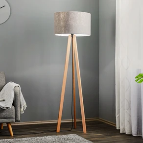 z trójnożną dębową ramą i białym kloszem przyciąga uwagę każdego.