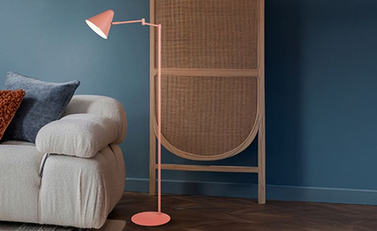Kąciki do czytania, biurka itp. są wzbogacone o kolorowe lampy stojące, aby uczynić je jeszcze bardziej przyjemnym miejscem. W czystym wnętrzu przyciągają wzrok jaskrawymi kolorami, które nadają danemu obszarowi zupełnie inny charakter. Uwielbiamy te wesołe kontrasty w jednokolorowym szyku, które można znaleźć w przytulnych kocach, poduszkach na sofę i nadrukach ściennych.
