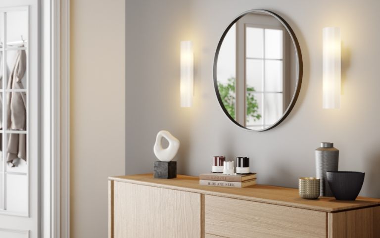 Buduj na tej podstawowej koncepcji: Jasne oświetlenie otoczenia jest uzupełnione ukierunkowanym oświetleniem strefowym i uzupełnione nastrojowymi akcentami, aby stworzyć zrównoważoną koncepcję oświetlenia. Połączenie lamp sufitowych dla podstawowej jasności, kinkietów dla przyjemnego i stylowego oświetlenia strefowego oraz taśm LED dla pośrednich akcentów sprawdza się szczególnie dobrze w przedpokoju.