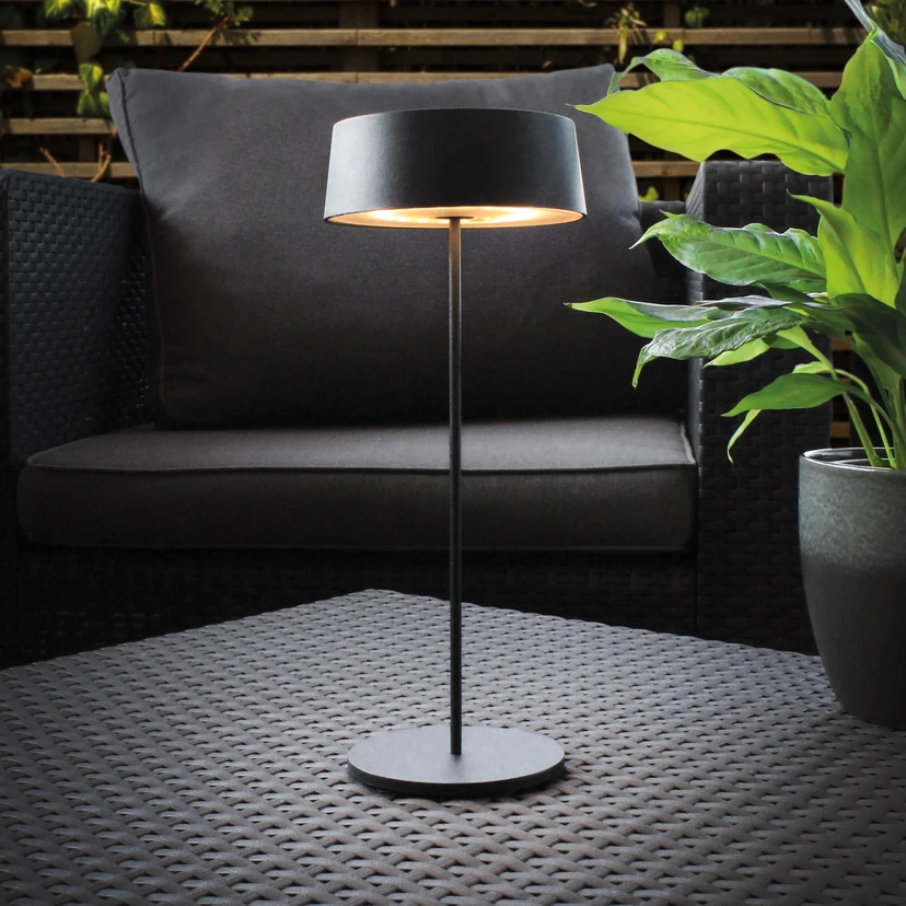 Zintegrowany ściemniacz dotykowy: Akumulatorowa lampa stołowa LED Cocktail ze złączem USB-C, IP54Lampa stołowa LED Cocktail jest wyposażona w dwa akumulatory, które są ładowane przez zintegrowane złącze USB-C. Kabel USB-C wchodzi w zakres dostawy. Jej obudowa jest wykonana z metalu i jest zabezpieczona przed bryzgami wody. Dzięki temu może być używana niezależnie od źródła zasilania na zewnątrz, np. na balkonie lub tarasie. Zintegrowane diody LED emitują ciepłe białe światło (3000 K), którego intensywność można płynnie ściemniać dzięki wbudowanemu ściemniaczowi dotykowemu.