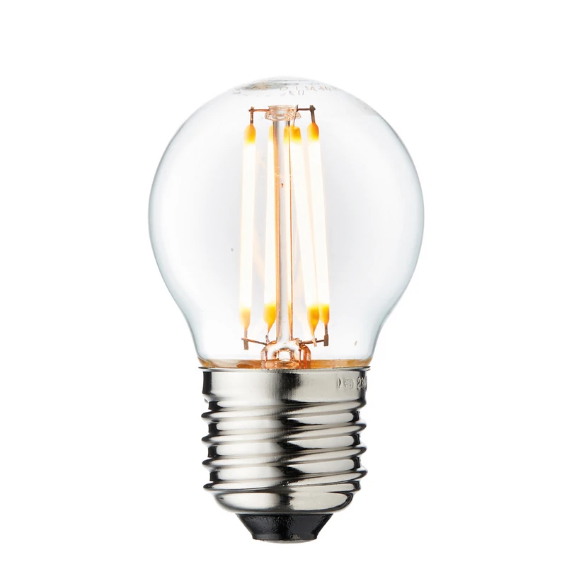 Źródło światła LED Arbitrary Filament E27, Ø 4,5 cm, 3,5 W, 2200 K, ściemniane Źródło światła LED Arbitrary z podstawą E27 zachwyca kompaktowymi rozmiarami, wyjątkowo ciepłą barwą światła i widocznymi żarnikami. Nadaje się na przykład do opraw oświetleniowych DESIGN BY US Pollish XS, Addicted to Us, Punk i Micro Vintage. Naturalnie pasuje również do każdej oprawy oświetleniowej z oprawą E27. Arbitrary jest również ściemniany.