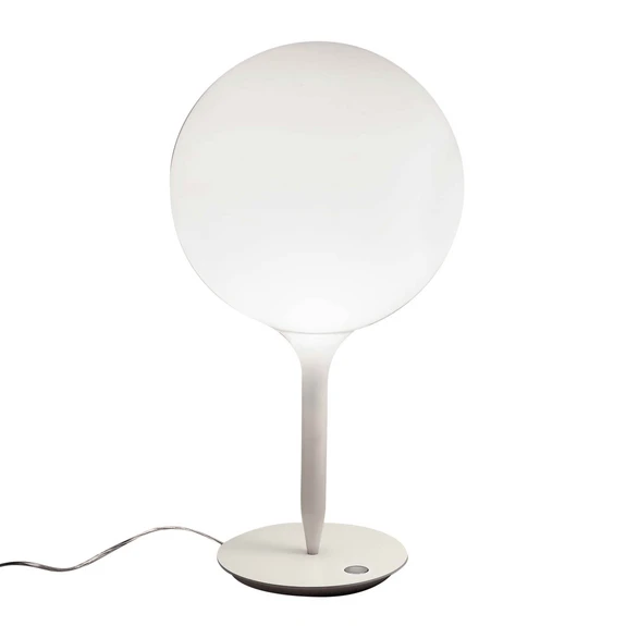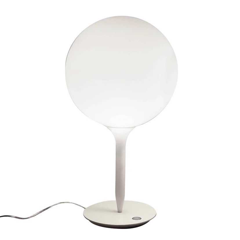 Ściemniana designerska lampa stołowa Castore w kolorze białym z ustnie dmuchanym szkłem