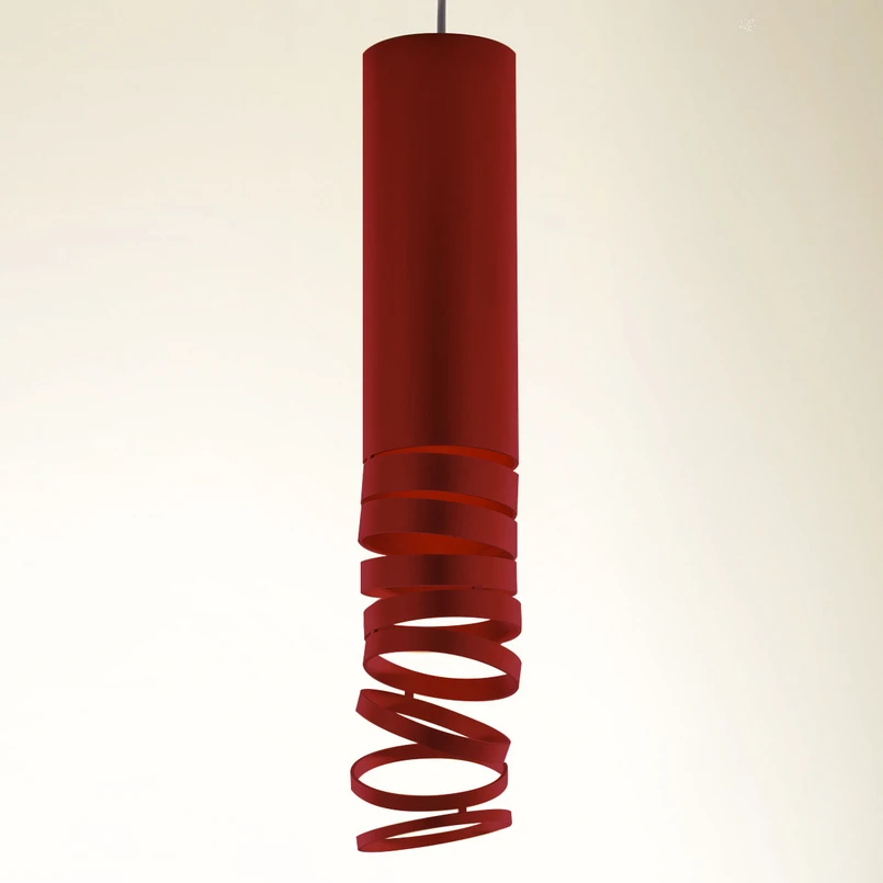 Aluminiowy klosz ma formę rurki i otwiera się w kierunku podłogi jak serpentyna. Światło emitowane bezpośrednio w dół napotyka na pojedyncze pierścienie i tworzy cudowną grę światła i cienia. Nazwa Decomposé (fr. „rozpadać się”) nadana obiektowi oświetleniowemu przez trzech projektantów szwajcarskiego Atelier Oï idealnie pasuje do wyglądu tej ekstrawaganckiej lampy wiszącej.