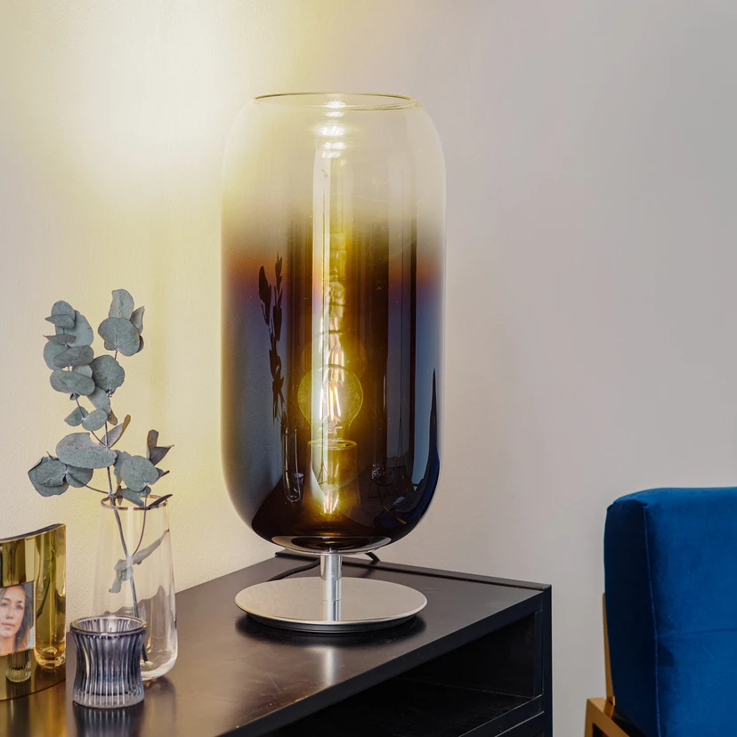 Szklana lampa stołowa Gople do fascynującego oświetlenia akcentującego Lampa stołowa Gople, z ręcznie wykonanym szklanym kloszem w starej weneckiej &Tradition, emanuje innowacyjnym designem i nastrojowym światłem. Jeśli filigranowe piękno lampy stołowej Gople sprawia, że jest ona ozdobą pomieszczenia, gdy jest wyłączona, jej pełny urok ujawnia się, gdy tylko oświetlenie jest włączone, podkreślając różnorodność szklanego wykończenia. Każda oprawa Gople jest wyjątkowa dzięki skrupulatnemu rzemiosłu. Gople, z kolorowym, przezroczystym kloszem, który przyciąga wzrok w każdej przestrzeni, jest projektem Bjarke Ingels Group (BIG), grupy urbanistyczno-architektonicznej znanej z licznych projektów, takich jak duńskie Muzeum Morskie w 2013 r. lub Copenhagen Harbour Baths, system kąpielisk wzdłuż wybrzeża Kopenhagi. Gople jest produkowany i dystrybuowany przez Artemide z Włoch, producenta oświetlenia, którego nazwa od dziesięcioleci jest synonimem wysokiej jakości i innowacyjnie zaprojektowanych produktów na całym świecie - made in Italy