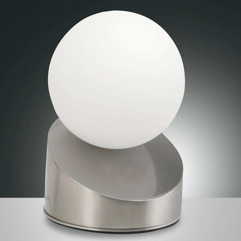 Lampka nocna LED Gravity wydaje się przezwyciężać siły ciężkości: kula z satynowanego szkła wisi na górnym rogu ukośnej podstawy, zamiast się z niej stoczyć. Ten widok jest naprawdę spektakularny. Producent celowo umieścił kulisty klosz w ten sposób, aby stworzyć niepowtarzalną oprawę świetlną. Świecąca satynowana kula i połyskująca niklowa podstawa doskonale pasują do siebie nawzajem i dają fantastyczny efekt w nowoczesnym stylu. Po włączeniu lampy emituje ona światło o barwie ciepłej bieli, które można jednak ściemnić, uzyskując dowolną jasność wnętrza. Ponadto przy każdym stopniu jasności istnieje inna możliwość ustawienia oprawy świetlnej, oczywiście również całkowicie spersonalizowana.