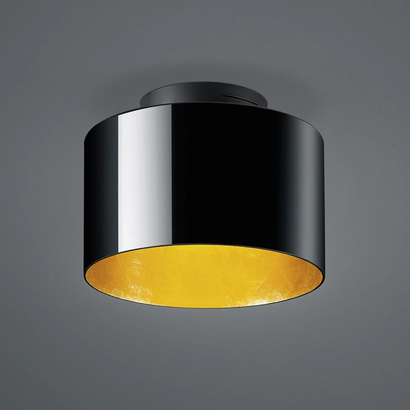 Elegancka lampa sufitowa LED Luce elevata Grand, kompatybilna z ZigBee, zintegrowany ściemniany ściemniacz dotykowy Nawet jeśli elegancki design lampy sufitowej LED Luce elevata Grand przyciąga wzrok jako pierwszy, to błyszczy ona również od strony technicznej. Zastosowano w niej wysokiej jakości diody LED o dobrym oddawaniu barw, emitujące ciepłe, białe światło. Oświetlenie może być również ściemniane zewnętrznie za pomocą triaka. Wraz ze spadkiem natężenia światła, barwa światła staje się cieplejsza (ściemniana do ciepłej). Luce elevata Grand jest montowana na suficie za pomocą aluminiowej rozety z czarnym wykończeniem. Jej szklany klosz jest również czarny z zewnątrz, a wnętrze jest ręcznie wykończone stylowym złotym liściem. Światło odbija się od złotego wnętrza, tworząc wyjątkowo przyjemną atmosferę świetlną. "Luce elevata" to nazwa nadawana szczególnie wysokiej jakości i misternie zaprojektowanym źródłom światła przez firmę BANKAMP, producenta opraw oświetleniowych, który od 1947 roku jest synonimem ręcznie robionych opraw oświetleniowych wysokiej jakości w Niemczech.