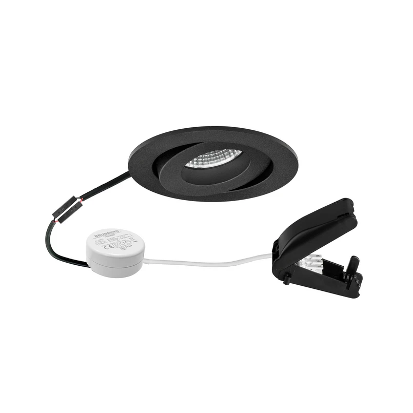 Okrągły reflektor wpuszczany LED BB33 ze sterownikiem LED z trybem odcinania fazy i skrzynką przyłączeniową BB33 to wpuszczany reflektor LED do beznarzędziowego montażu sufitowego za pomocą sprężyn montażowych, który jest dostarczany jako kompletny zestaw ze sterownikiem LED, który można ściemniacz z trybem odcinania fazy (RC) i skrzynką przyłączeniową. Reflektor ma błyszczący srebrny kolor i obrotowo symetryczny, głęboki rozsył światła. Przezroczysta osłona z poliwęglanu zapewnia optymalny rozsył światła - Spot można obracać w zakresie 20° - W zestawie elektroniczny układ sterowania, ściemniany fazowo - W zestawie 3-pinowa puszka przyłączeniowa do okablowania przelotowego - Dopuszczalna temperatura otoczenia (Ta): -20 °C - +25 °C