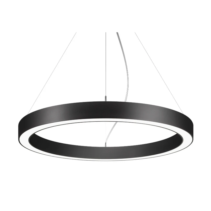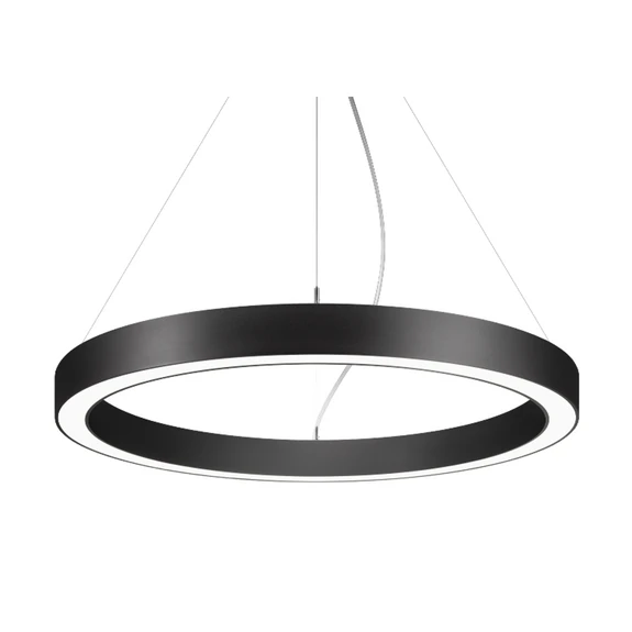 Lampa wisząca LED Biro Circle Ring, Ø 45 cm z przełączanym mechanizmem sterującym Klosz lampy wiszącej LED Biro Circle Ring jest wykonany z aluminium w kształcie pierścienia i zamknięty od dołu opalowo-białą osłoną z tworzywa sztucznego. Osłona ta, w połączeniu z obrotowo symetrycznym rozsyłem światła o dużej szerokości, zapewnia jasne oświetlenie i optymalny rozsył światła. Oprawa wisząca Biro Circle Ring oświetla nie tylko powierzchnie komercyjne, takie jak biura czy sale konferencyjne, ale także stół lub ladę w kuchni lub jadalni w prywatnych pomieszczeniach mieszkalnych. - ogólny indeks barw CRI > 80, - żywotność L70/B50 przy 25 °C: 276.żywotność L80/B20 przy 25 °C: 153 000 h, żywotność L80/B50 przy 25 °C: 153 000 h - materiał obudowy: aluminium / stal / tworzywo sztuczne - dopuszczalna temperatura otoczenia (ta): -20 °C - +25 °C - z elektronicznym układem sterowania, przełączany, nie ściemniany