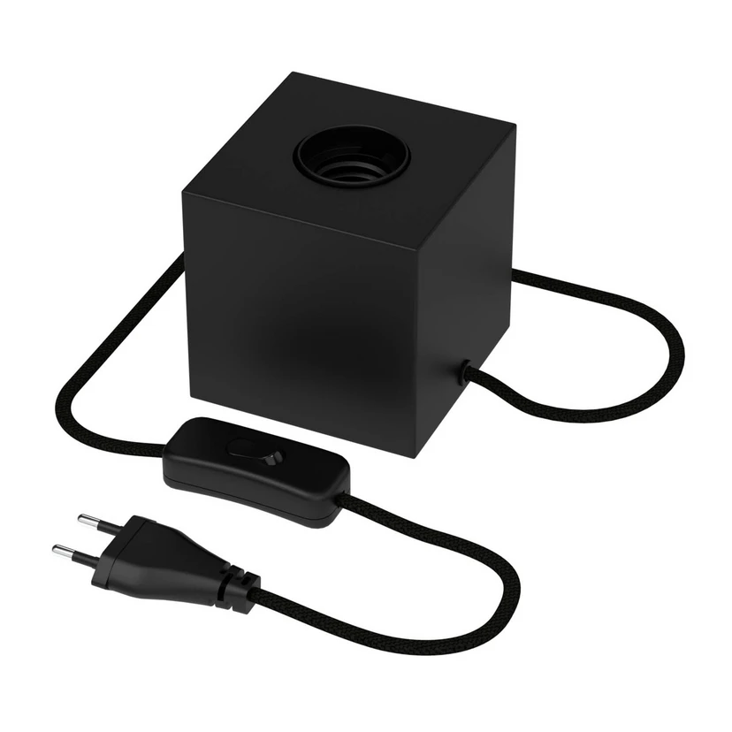 Lampa stołowa w kształcie sześcianu marki Calex z przełącznikiem na kabluTa lampa stołowa w kształcie sześcianu marki Calex jest wykonana z metalu i ma jednolite lakierowane wykończenie. Na kablu znajduje się przełącznik umożliwiający jej włączanie i wyłączanie. Dzięki kompaktowemu kształtowi i niefrasobliwemu wykończeniu sprawia, że używany iluminator znajduje się w centrum uwagi. W ten sposób można optymalnie wyeksponować oświetlacze z widocznymi żarnikami, lampy kuliste i oświetlacze o specjalnych kształtach. Wybór pasujących żarówek E27 znajduje się w akcesoriach.