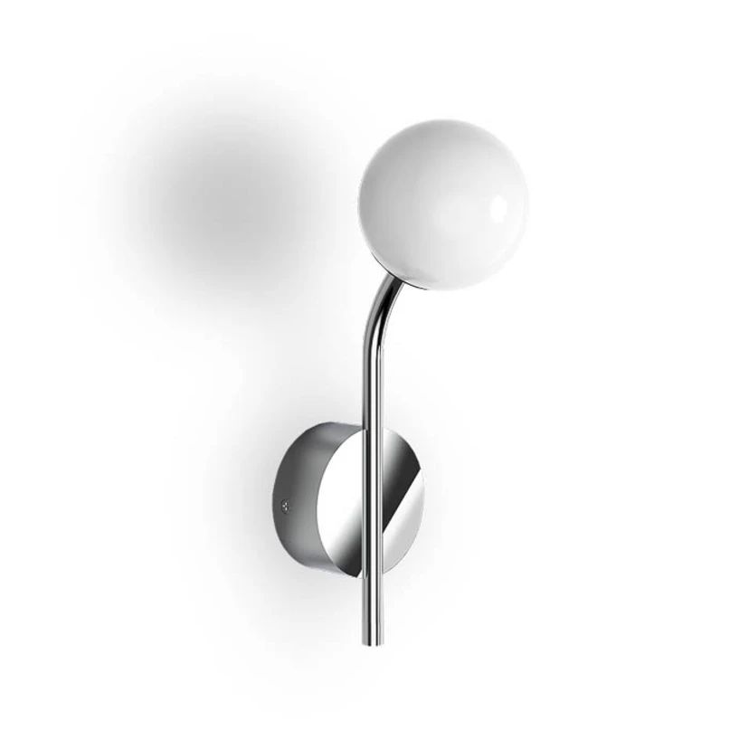 Lampa ścienna Pep jest już nieoświetlona w każdym pomieszczeniu, które przyciąga wzrok. Składa się z okrągłego uchwytu ściennego i pionowego, na końcu lekko wygiętego do przodu ramienia wykonanego z żelaza. Na końcu ramienia znajduje się kulisty klosz wykonany z satynowego szkła. Mieści się w nim lampa G9 (patrz akcesoria), której światło jest rozpraszane równomiernie we wszystkich kierunkach. Dzięki temu Pep stanowi przyjemne dodatkowe źródło światła w nowoczesnej przestrzeni mieszkalnej, zarówno w salonie, przedpokoju jak i sypialni.