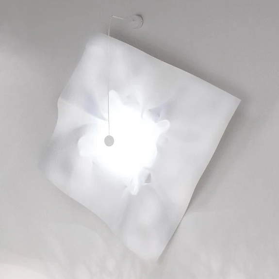 Biała lampa ścienna LED Crash ze światłem pośrednimKorpus lampy ściennej LED Crash wygląda jak chusteczka do nosa, która została lekko pognieciona i niedbale wyrzucona, co jest zgodne z jej nazwą. Lakierowany na biało stalowy korpus został wykonany ręcznie i starannie wgnieciony i wygięty w niektórych miejscach. Te fałdy i wgniecenia są ostatecznie odpowiedzialne za wspaniały efekt świetlny oprawy, ponieważ źródło światła - dioda LED umieszczona w uchwycie - oświetla korpus, a tym samym pośrednio emituje światło do pomieszczenia. Szczególną rolę odgrywa tutaj biała, karbowana powierzchnia kinkietu. Światło jest bardzo dobrze odbijane do pomieszczenia przez biały kolor, a zmarszczki i wgniecenia są szczególnie dobrze widoczne. Wykonany ręcznie.