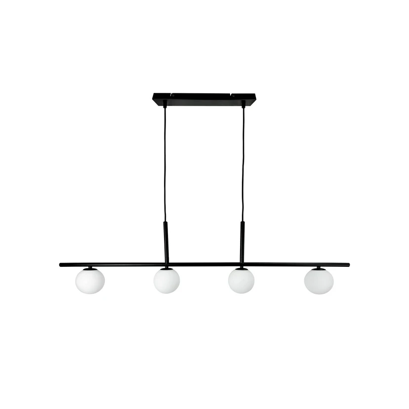Lampa wisząca Alice o nowoczesnym designie - 4-punktowa Lampa wisząca Alice w kolorze czarnym odmienia atmosferę pomieszczenia dzięki skandynawskiemu designowi i nowoczesnym akcentom. Ta 4-punktowa metalowa lampa wisząca to stylowy dodatek do salonów, jadalni i kuchni, który zachwyca nie tylko swoim wyglądem, ale także możliwością wpływania na nastrój. Chociaż ściemniacz nie jest dołączony do zestawu, jasność lampy można dowolnie regulować, podłączając ją do zewnętrznego ściemnianego źródła światła, aby stworzyć idealną atmosferę w każdej sytuacji. Lampa wisząca Alice stanowi designerską deklarację, która zarówno inspiruje, jak i uspokaja.