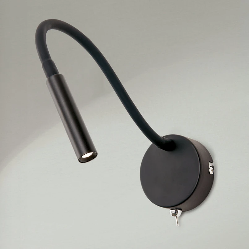 Z przełącznikiem - elastyczne ramię lampy ściennej LED ColinW kwestii elastyczności lampa ścienna LED Colin bez wątpienia przekonuje. Dyspozytor światła wyposażony w elastyczne ramię oprawy nadaje się szczególnie do tych obszarów salonu, w których jest mało miejsca na lampę stołową lub podłogową, ale gdzie nadal potrzebne jest ukierunkowane źródło światła. Wystarczy pomyśleć o szafce nocnej lub biurku, gdzie często brakuje miejsca. Colin jest wykonany z aluminium i pokrytego tworzywem sztucznym elastycznego ramienia i jest wyposażony w przełącznik toggle na obudowie.