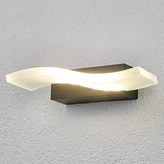 Piękna lampa zewnętrzna LED JIRKA ze szklanym elementem w kształcie fali