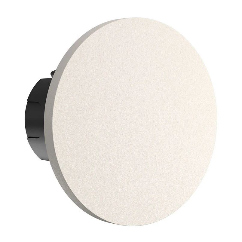 Okrągła lampa wpuszczana LED Camouflage leży bardzo płasko przy ścianie i promieniuje światło do tyłu, tworząc wokół oprawy wyjątkowy pierścień światła i tym samym skutecznie oświetlając elewację. Okrągła powierzchnia oprawy została zaprojektowana inaczej. W przypadku wersji Basalt Stone, Stone Crema i Concrete, cienki arkusz tego materiału został przyklejony do okrągłej płyty aluminiowej za pomocą niezwykle trwałego kleju. Pozostałe wersje kolorystyczne zostały zrealizowane poprzez podwójne malowanie proszkowe. Wcześniej powierzchnie zostały wypiaskowane, aby zapewnić optymalną przyczepność. Podczas gdy pierwsza powłoka epoksydowa zapewnia ochronę przed czynnikami mechanicznymi i chemicznymi, druga powłoka proszkowa z poliestru chroni przed promieniowaniem UV i czynnikami atmosferycznymi. Dostępna jest również wersja z podkładem. Można to ozdobić farbami wodnymi według własnego życzenia lub nawet otynkować.