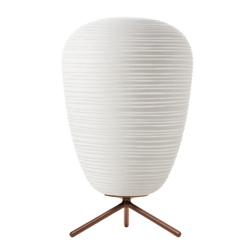 Lampa stołowa Rituals 1 firmy Foscarini charakteryzuje się czystym odprężeniem i równowagą. Kształt i struktura dmuchanego szklanego klosza nie przypomina za bardzo litego szkła, lecz bardziej lekki, japoński papier. Wierna swojej nazwie, Rituals dowodzi, że oświetlenie tła podczas medytacji lub sesji relaksacyjnych niekoniecznie musi pochodzić ze źródeł światła wykonanych z naturalnych materiałów, ale że szklane lampy mogą również tworzyć przytulną atmosferę dobrego samopoczucia.