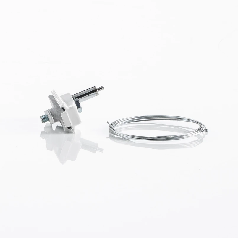 Szyny 3-fazowe LKM firmy Ivela można montować w pozycji podwieszonej za pomocą tego adaptera wraz z linką o długości 2 m i napinaczem linki.