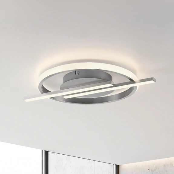 Bezstopniowo ściemniana za pomocą przełącznika ściennego: lampa sufitowa LED Korsa Lampa sufitowa LED Korsa ma nowoczesny design i jest wyposażona w praktyczne funkcje, których można oczekiwać od nowoczesnego oświetlenia. Można ją ściemniać bezstopniowo w zakresie od 100 do 10% za pomocą zwykłego przełącznika ściennego, a dzięki funkcji pamięci przy następnym włączeniu ponownie uruchamia się dokładnie z ustawieniem, które było ustawione przy ostatnim wyłączeniu.