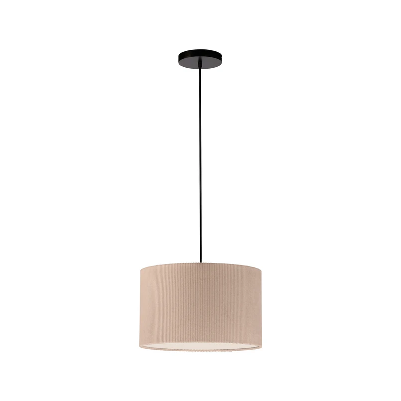 Zielona lampa wisząca Duro z tekstylnym kloszem w kolorze piasku Green Duro to prosta lampa wisząca z cylindrycznym kloszem wykonanym z trwałego materiału tekstylnego, który pasuje do każdego wnętrza i wielu pomieszczeń. Nad stołem w jadalni, w części wypoczynkowej w salonie lub w sypialni - lampa wisząca zapewnia przyjemne oświetlenie otoczenia. W kloszu znajduje się oprawa E27, do której można podłączyć wybrane źródło światła (maks. 10 W LED).