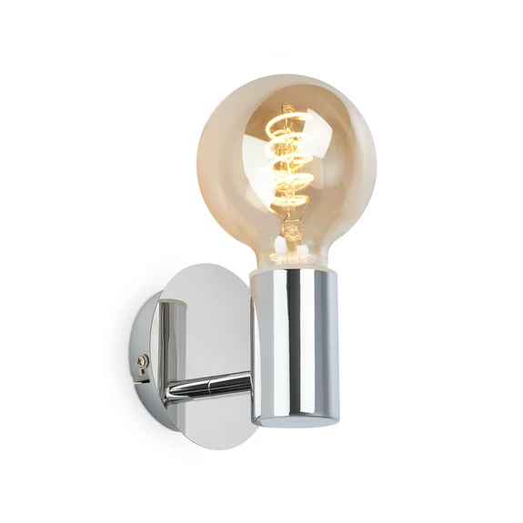 Kinkiet łazienkowy Kosol z oprawką skierowaną w góręMała lampa ścienna Kosol wzbogaca pokoje dzienne i salony, a także łazienki i spa (IP44). Kinkiet wykonany jest z metalu i tworzywa sztucznego. Składa się z okrągłej osłony ściennej, krótkiego wspornika i cylindra. Ten ostatni mieści skierowaną w górę oprawkę, którą można doskonale wyposażyć w dekoracyjne źródło światła.