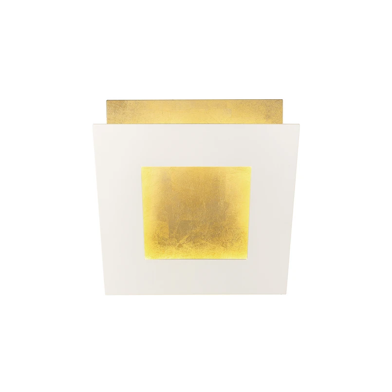 Kinkiet LED Dalia z efektem oświetlenia pośredniego, regulowany Kinkiet LED Dalia składa się z kwadratowej płyty ściennej i równie kwadratowej ramy na górze, za którą zainstalowane są diody LED o barwie ciepłego bieli. Ramę można obracać na płycie ściennej, dzięki czemu można zmieniać kształt oprawy i tworzyć liczne kształty geometryczne, co również zmienia efekt świetlny.