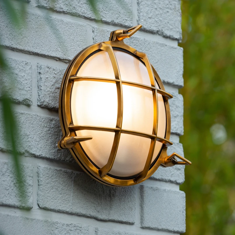 Kinkiet zewnętrzny Dudley, płaski/okrągły, mosiądz
