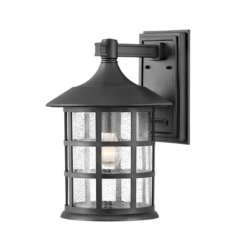 Do użytku na zewnątrz - oprawa ścienna Freeport L Zewnętrzna oprawa ścienna Freeport L wykonana z odpornego na warunki atmosferyczne materiału kompozytowego prezentuje się jako nowocześnie zaprojektowana latarnia. Neutralna kolorystyka pozwala na połączenie z wieloma wzorami elewacji. Struktura ziaren wbudowana w przezroczyste szkło nadaje światłu emitowanemu przez lampę miękką atmosferę. Wymagane źródło światła nie jest zawarte w zestawie. Najpiękniejszy efekt zapewniają żarówki, które można zamówić osobno za pośrednictwem akcesoriów.