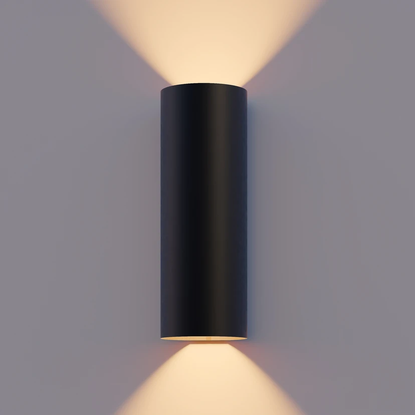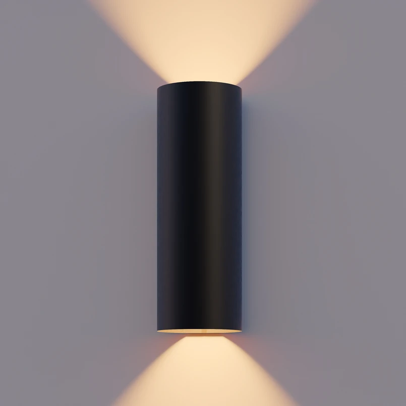 Cylindryczny kinkiet zewnętrzny LED Round ze szklanymi osłonami, górnym i dolnym reflektorem Zewnętrzny kinkiet zewnętrzny Round służy do nowoczesnego oświetlenia akcentującego i orientacyjnego na fasadach i w strefach wejściowych. Aluminiowa obudowa ma prosty, wysoki, cylindryczny kształt i czarne wykończenie. Za szklanymi osłonami zintegrowano dwa źródła światła LED o barwie ciepłej bieli; ich światło jest emitowane w górę i w dół - Stopień ochrony: IP54 - W zestawie sterownik LED o stałym natężeniu prądu (wł./wył.)