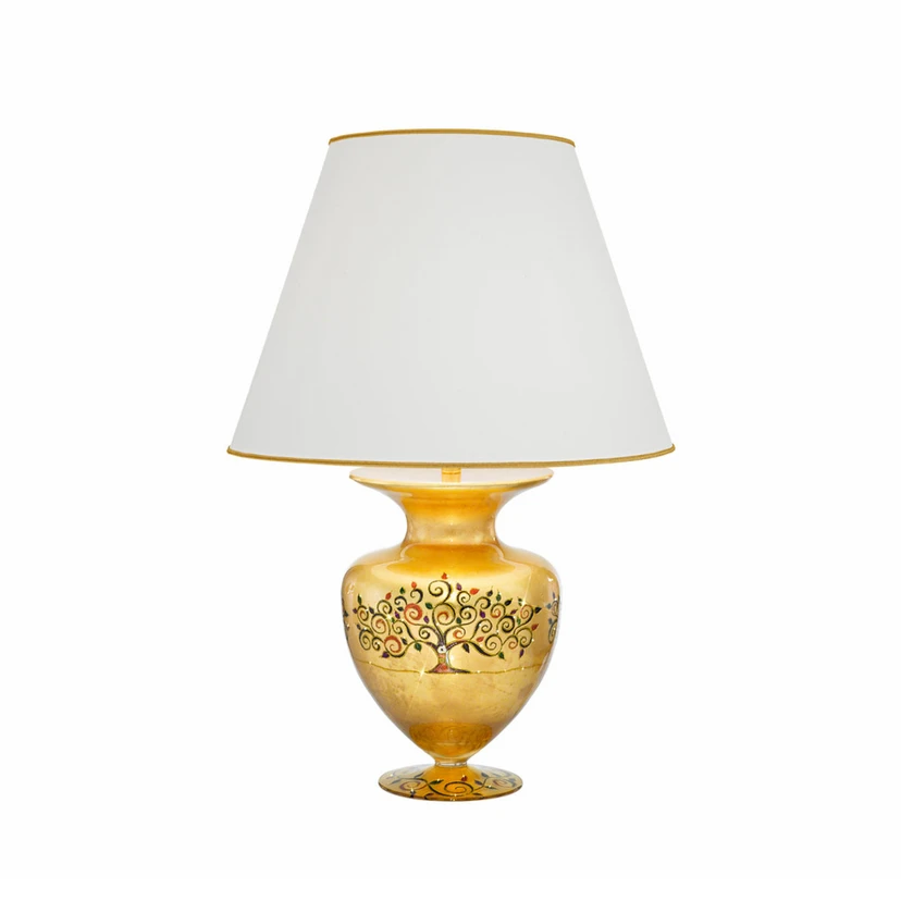 Inspirowana antycznymi amforami: Lampa stołowa Anfora Wzornictwo o ponadczasowym pięknie i ręcznie malowane z dbałością o szczegóły charakteryzuje lampę stołową Anfora, której design inspirowany jest wyglądem antycznych amfor. Ten wspaniały przepływ kolorów i kształtów będzie przyciągał wzrok w każdym pomieszczeniu. pozłacana 24-karatowym złotem. Wykonana ręcznie, każdy egzemplarz jest naprawdę wyjątkowy.