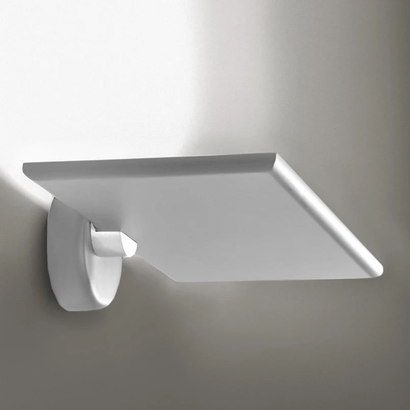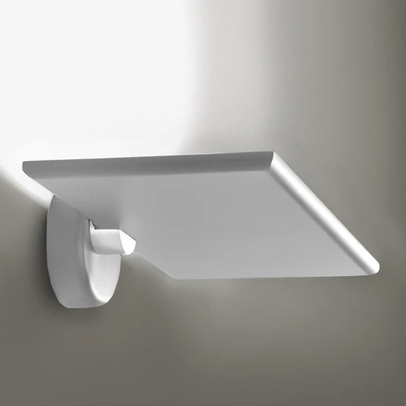 Biały kinkiet LED GiuUp o jasności GiuUp to nowoczesny obiekt oświetleniowy, który doskonale sprawdza się w pomieszczeniach mieszkalnych dzięki pośredniej emisji światła, ale może być również stosowany do oświetlania przestrzeni publicznych lub komercyjnych, w których wymagana jest przytulna atmosfera świetlna. Biały klosz trudno uznać za klasyczny, jeśli spojrzeć na jego formę, ponieważ jest to płaski, kątowy dysk o prostym wyglądzie. Sprawia to, że energooszczędny, jasny kinkiet LED doskonale pasuje do nowoczesnego otoczenia mieszkalnego.