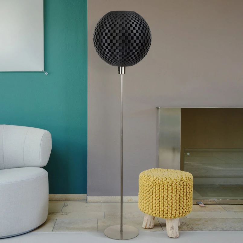 Plecionka - designerska lampa stojąca ze szklanym kloszem z drukarki 3D
