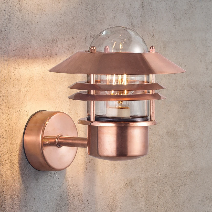 Zewnętrzna lampa ścienna w kolorze miedzi do terenów zewnętrznych zaprojektowanych w kreatywnym stylu, 15 lat gwarancji, stopień ochrony IP44.
