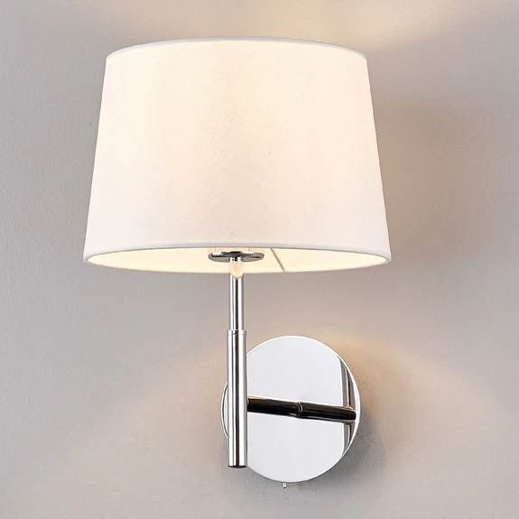 Lampa ścienna z białym, materiałowym abażurem