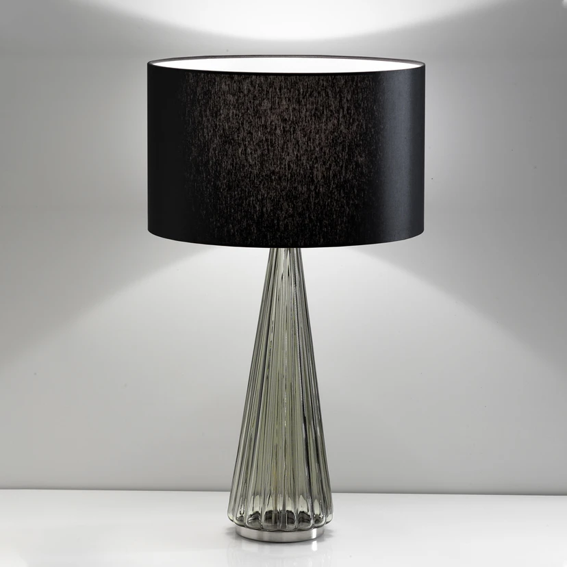 Lampa stołowa Costa jest produkowana w Veneto i łączy w sobie klasyczny kształt lampy z nowoczesnym wzornictwem. Dzięki czarnemu odcieniowi tkaniny i szklanej podstawie promieniuje powściągliwą elegancją, która nadaje każdemu pomieszczeniu stylowy wygląd. Czarny, tekstylny klosz zapewnia dystrybucję światła w górę i w dół, dzięki czemu Kostaryka idealnie nadaje się do oświetlania stolika nocnego. Ryflowana szyba podstawy lampy jest dmuchana ustnie i dostępna w różnych kolorach, co pozwala na łączenie z różnymi koncepcjami kolorystycznymi.