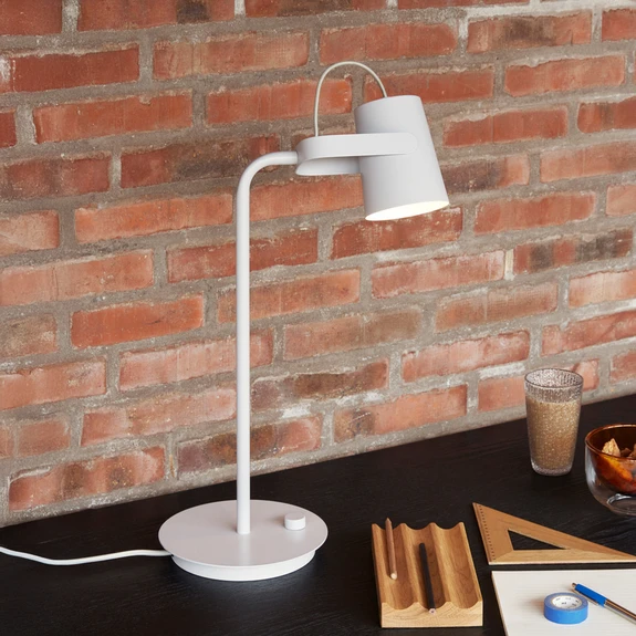 Lampa stołowa Ardent - idealna na biurko Voilà - Ardent to piękna, nowoczesna lampa biurkowa. Została zaprojektowana w tak stonowanym stylu, że doskonale prezentuje się w każdym wnętrzu. Prosta, ale odważna, elegancka, ale nowoczesna, ta lampa stołowa jest zwycięzcą do biura, sypialni lub pokoju dziecięcego. Przełącznik obrotowy ułatwia obsługę.
