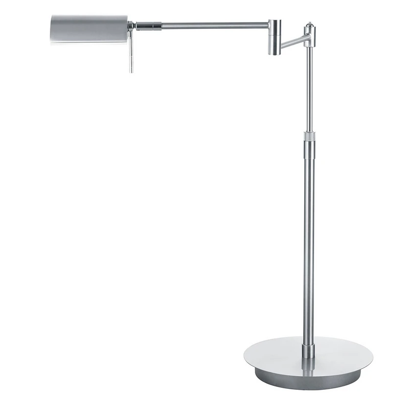 Zmienna lampa biurkowa LED Graz ze ściemniaczem dotykowymWdzięczna lampa biurkowa LED Graz doskonale dopasowuje się do potrzeb swojego użytkownika, ponieważ posiada niezwykle elastyczną oprawę oświetleniową, która umożliwia elastyczne i indywidualne oświetlenie.Nie tylko można dowolnie regulować wysokość w zakresie od 40 do 60 cm, ale również elastycznie odchylać ramię oprawy, a także odchylać i obracać głowicę oprawy. Ponadto oprawa jest wyposażona w przycisk, za pomocą którego można płynnie regulować jasność.W ten sposób można błyskawicznie stworzyć idealne oświetlenie, aby móc wygodnie i przyjemnie pracować przy biurku w domu.Oprawa jest wykonana ze stali i pokryta szlachetnym wykończeniem, dzięki czemu stanowi absolutny klejnot na biurku.