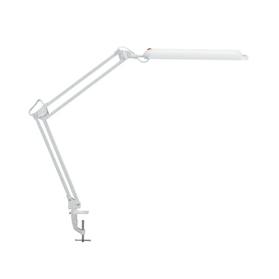 Lampa biurkowa LED MAULatlantic z podstawą zaciskową, regulowana Lampa zaciskowa LED MAULatlantic zapewnia energooszczędne, białe jak światło dzienne oświetlenie zadaniowe biurka w biurze lub domowym gabinecie. Głowica lampy i radiator są specjalnie przystosowane do funkcji LED. Wydłużona, regulowana w trzech płaszczyznach głowica lampy i filigranowe ramię w kształcie równoległoboku dyskretnie wtapiają się w otoczenie. Głowica lampy i reflektor zostały zaprojektowane z myślą o optymalnym wykorzystaniu światła - Metalowa podstawa zaciskowa z wygodnym podparciem na biurku (szerokość mocowania do 5,5 cm) - Natężenie światła: 2140 luksów w odległości 35 cm