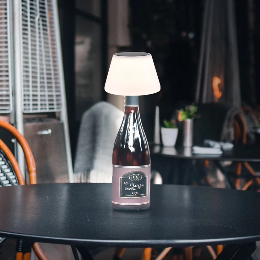 Lampa solarna LED 36000 do mocowania na butelkach Ta lampa solarna LED wykonana z opalowego białego tworzywa sztucznego z wyłącznikiem pociągowym zapewnia nastrojowe oświetlenie na każdym stole. Lampka jest umieszczana na butelce i wyposażona w diody LED o barwie ciepłej bieli. Można je przełączać w trzech trybach: Tryb 1 z 50-procentowym natężeniem światła, świeci również, gdy jest jasno, Tryb 2 100-procentowe natężenie światła (świeci również, gdy jest jasno) lub Tryb 2 solarny (świeci tylko, gdy jest ciemno) - Z przełącznikiem suwakowym do włączania i wyłączania - Idealna również do zewnętrznych obszarów gastronomicznych
