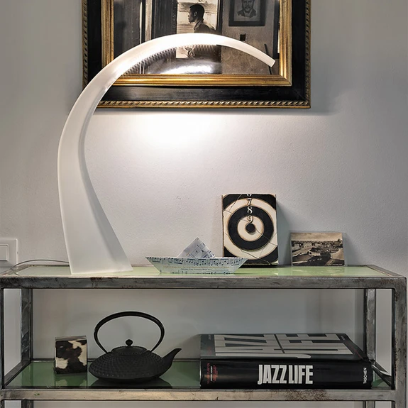Designerski element na biurko lub szafkę nocną: lampa stołowa LED Taj Mini Podczas gdy większość lamp biurkowych jest szczególnie elastyczna i przegubowa, a przez to zwykle wygląda mechanicznie, mała designerska lampa stołowa Taj Mini jest dokładnym przeciwieństwem. Wykonana jest z jednej formy, ma zakrzywiony wygląd i nie posiada ani jednego przegubu, a mimo to spełnia swoje zadanie: zapewnia praktyczne oświetlenie, np. przy biurku lub obok łóżka. Diody LED są zamontowane na spodzie zakrzywionego plastikowego korpusu, na górze, dzięki czemu Taj Mini może imitować formę i funkcję konwencjonalnej lampki biurkowej. Włoska firma Kartell, z siedzibą w Noviglio koło Mediolanu, znana jest z mebli i przedmiotów codziennego użytku wykonanych z tworzywa sztucznego. Znani projektanci, tacy jak Philippe Starck, Giotto Stoppino oraz Achille i Piergiacomo Castiglioni to tylko niektórzy z projektantów, którzy stworzyli krzesła, stoły i lampy dla firmy Kartell.