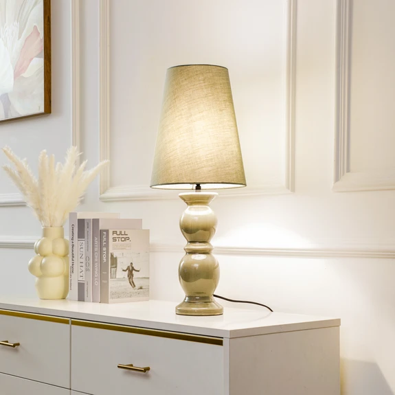 Zielona lampa stołowa Lyndorin z ceramiki i tkaniny Nawet gdy jest wyłączona, ta lampa stołowa tworzy zdecydowanie dekoracyjny akcent. Lampę można obsługiwać bez wysiłku za pomocą przełącznika. Jej atrakcyjny wygląd skutecznie uzupełnia koncepcję oświetlenia każdego pomieszczenia. Ta lampa łączy w sobie wszystkie cechy i HighLight, które marka Lucande ma do zaoferowania. Lampa stołowa jest w kolorze zielonym. Doskonale integruje się z pomieszczeniem i tworzy wspaniałą atmosferę. Lampa stołowa jest wyposażona w oprawę E27. Stylowy wygląd lampy dodaje pięknego akcentu do przestrzeni życiowej, który może pasować do praktycznie każdego z istniejących elementów dekoracyjnych. Ta lampa stołowa to prawdziwy atut Twojego domu.