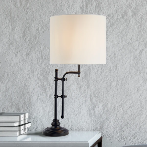 Lampa stołowa Munich, czarny/biały, len, E27, regulowana