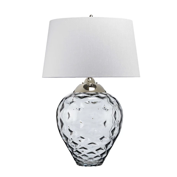 Designerska lampa stołowa Samara z podświetlaną szklaną podstawą Lampa stołowa Samara to skuteczne źródło światła do nastrojowego oświetlenia salonów i sypialni. Jej klosz został wykonany ręcznie ze sztucznego jedwabiu i jest oświetlany przez żarówkę z trzonkiem E27, natomiast przezroczysta szklana podstawa jest podświetlana przez zintegrowaną żarówkę LED z trzonkiem GU10. Źródła światła mogą być przełączane oddzielnie lub razem za pomocą 4-drożnego przełącznika wbudowanego w kabel.