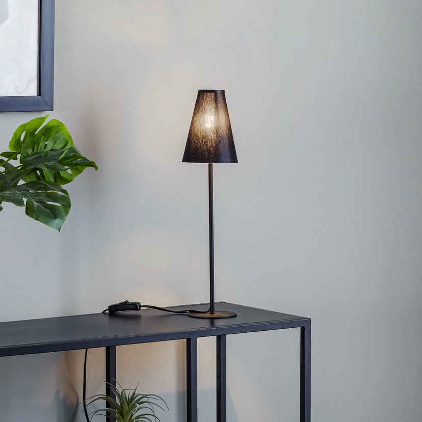 Lampa stołowa Trifle w eleganckiej czerni łączy w sobie nowoczesny design z funkcjonalnym oświetleniem. Wykonana z wysokiej jakości aluminium i tkaniny, idealnie pasuje do różnych pomieszczeń mieszkalnych, takich jak salon, sypialnia i jadalnia. Standardowa oprawa G9 umożliwia łatwą wymianę źródła światła LED, co sprawia, że lampa jest wyjątkowo elastyczna i przyszłościowa.