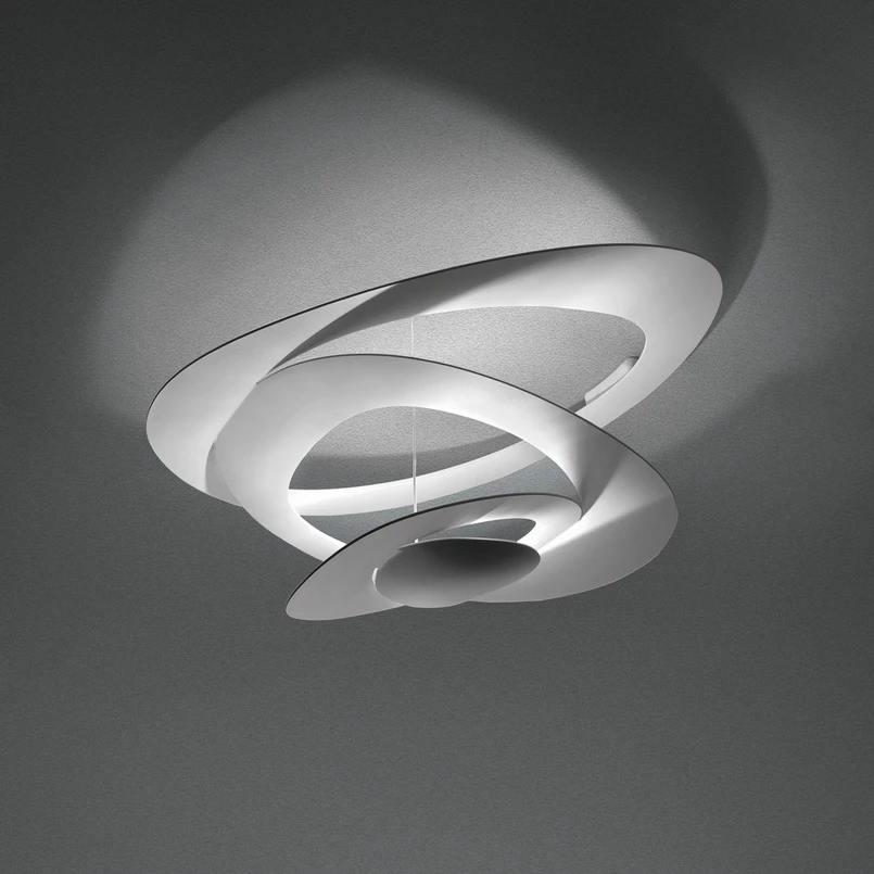 Wielokrotnie nagradzana lampa sufitowa Pirce od Artemide Lampa sufitowa Pirce przyciąga wzrok, niezależnie od tego, czy jest włączona, czy wyłączona. Pochodzi ze studia projektowego Artemide, a jej konstrukcja składa się z organicznie ukształtowanych aluminiowych pierścieni, które rozchodzą się od środka w dół. Dolny element pierścienia zawiera źródło światła (brak w zestawie), które tworzy wyjątkową atmosferę oświetleniową w pomieszczeniu i wizualnie podkreśla design. Giuseppe Maurizio Scutellà jest projektantem, który stworzył serię opraw oświetleniowych Pirce we współpracy ze studiem projektowym Artemide. Seria Pirce zdobyła już kilka nagród za wzornictwo i jest prawdziwym klasykiem sprzedaży tego producenta. Innowacyjny design i najnowocześniejsza technologia to gwarancja tej serii opraw.