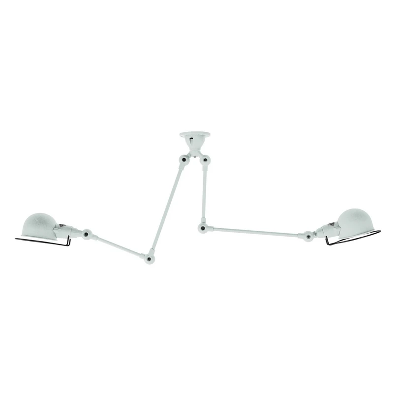 Fascynująca lampa sufitowa Signal Sky3773 z przegubowymi ramionami - 2-punktowa Dzięki tej niezwykłej lampie sufitowej pokoje dzienne i korytarze mogą być indywidualnie oświetlane aż do ostatniego rogu. Die Signal Sky3773 nie ma stałego kierunku padania światła. Lampa sufitowa o industrialnym uroku pochodzi z Jieldé, rodzinnej firmy oświetleniowej należącej do założyciela Louise Domecq, która znajduje się w Saint-Priest niedaleko Lyonu. Signal Sky3773 jest wyposażona w dwa ramiona o tej samej długości, ale różniące się rozmieszczeniem dwóch sekcji ramion, które są różnej długości. Same ramiona są wyposażone w przeguby, każdy poniżej rozety, jako połączenie między elementami ramienia i poniżej głowic lampy. Każde z ramion i reflektorów można obracać o 300° na przegubach. Gwarancja zróżnicowanego oświetlenia otoczenia.