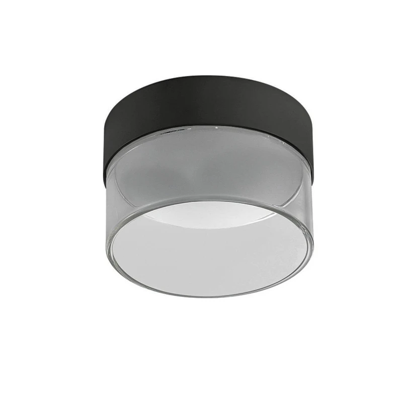 Lampa sufitowa LED Crumb z żelaza i szkła Mała, okrągła lampa sufitowa LED Crumb o cylindrycznym kształcie składa się z obudowy wykonanej z powlekanego żelaza i przylegającego do niej klosza z przezroczystego szkła. Może być używana jako źródło światła w wielu miejscach - pojedynczo lub zamontowana w kilku oprawach, lampa może być używana do oświetlania korytarzy, kuchni, salonów lub sypialni. Wbudowane diody LED emitują ciepłe, białe światło o wyjątkowo dobrym oddawaniu barw (CRI 90).