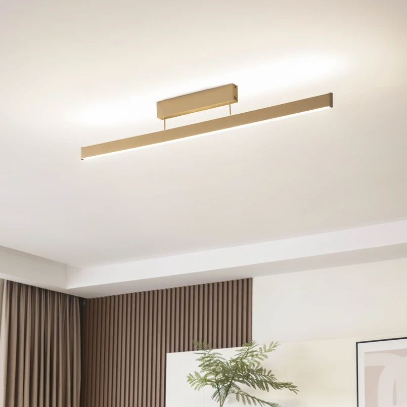 Elegancja w złocie: lampa sufitowa LED Mylosh do salonu i jadalni Lampa sufitowa LED Mylosh łączy nowoczesny design z funkcjonalną elegancją i tworzy atmosferę, która jest zarówno inspirująca, jak i przytulna. Zintegrowane źródło światła LED zapewnia energooszczędne oświetlenie, które można indywidualnie regulować dzięki dołączonej funkcji ściemniania. Lampa sufitowa nie tylko przyciąga wzrok złotym wykończeniem, ale jest również technicznie najnowocześniejsza. Kompatybilność z WLAN i Tuyasmart umożliwia wygodne sterowanie za pomocą odpowiednich aplikacji iOS i Android. Oznacza to, że natężenie światła można wygodnie regulować za pomocą smartfona, aby stworzyć odpowiedni nastrój w każdej sytuacji. Połączenie nowoczesnego stylu i zaawansowanej technologii inteligentnego domu sprawia, że lampa sufitowa Mylosh LED jest przyszłościowym wyborem dla wyrafinowanych koncepcji oświetleniowych.
