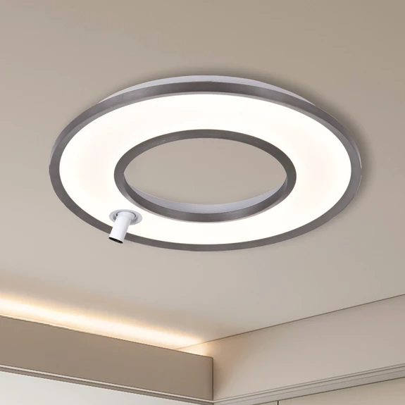 Lampa sufitowa LED Valeria zachwyca minimalistycznym, nowoczesnym wzornictwem. Wykonana jest z aluminium, stali i akrylu, a jej szara, szczotkowana powierzchnia nadaje jej elegancki i ponadczasowy wygląd. Wbudowane źródło światła LED zapewnia równomierne i przyjemne oświetlenie, a ciepła biel tworzy przytulną atmosferę. Dzięki doskonałemu współczynnikowi oddawania barw wynoszącemu 97 Ra kolory są odwzorowywane w sposób szczególnie autentyczny i żywy, co sprawia, że lampa idealnie nadaje się do salonów i jadalni, korytarzy lub kuchni.