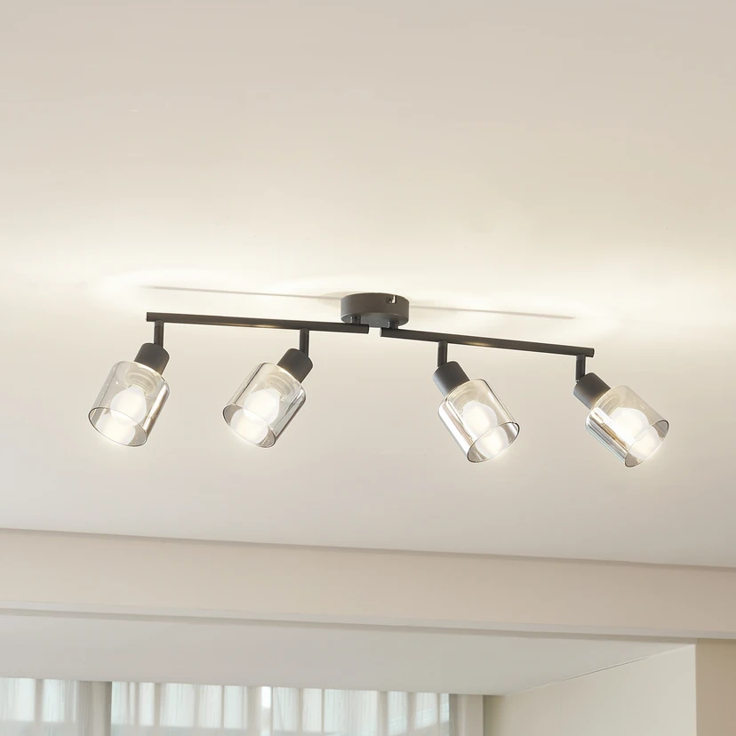 Lampa sufitowa Lindby Netty, 4-punktowa, szary, szkło
